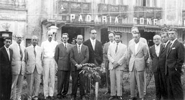 Ela veio junto com um material euclidiano que Walmyra e Zezinho Menechino me encarregaram de encaminhar como doação à Casa de Cultura Euclides da Cunha. Não há data, mas tudo faz crer que tem quase cinqüenta anos. Talvez de 1960. O local está facilmente definido: o jardim da Praça XV de Novembro defronte ao Raddi e ao Pavilhão. O prédio do antigo cinema sofreu radical transformação, virou Cine São Francisco, até ser vendido e demolido para dar lugar à agência da Caixa Econômica Federal. O Raddi pouco mudou, conservando até hoje seu nome em grandes letras de cimento. Nada está escrito na foto, mas certamente é um grupo de pessoas plantando uma árvore (pelo aspecto um ipê), mantendo tradição do Rotary Club, que repetia constantemente esse tipo de atividade tão educativa e tão digna de imitação. Lá estão, quase todos formalmente vestidos, na maioria com paletó e gravata: Pedro Taddei Netto, comerciante, com quem nunca tive maior familiaridade, mas pessoa de grande conceito e uma boa voz de locutor da ZYD-6, Rádio Difusora São José do Rio Pardo. Wilson Lodi, o amável e gentil companheiro de Câmara Municipal, fiel aos amigos e firme em suas convicções de Rotary, do qual chegou a governador. Eu sempre lembrava a ele que, quando menino, o havia xingado muito, inclusive de frangueiro, mais por diferenças clubísticas do que de verdade. É que eu era torcedor apaixonado do Rio Pardo, e Wilson goleiro da Associação. Além disso, excelente jogador de bola-ao-cesto, como se chamava então o atual basquete. Lembro-me de vê-lo disputando com outro esportista de categoria – o Totó Tessari – qual dos dois encestava mais bolas do meio da quadra. Era numa quadra descoberta da Associação, provavelmente a mais antiga da cidade. De Wilson me ficaram muitas provas de amizade, camaradagem e um alto senso de como se faz política desinteressadamente e com o mais elevado padrão ético. Jorge Luiz Abichabcki, para os mais íntimos o Jorgito. Foi meu professor de Educação Física desde a primeira série ginasial até o último ano do colegial. Líder natural, educador nato. Os alunos tinham profunda admiração e natural respeito por ele. Ensinava jogos, ginástica e principalmente educação cívica. Com ele percebi que professor de nenhuma outra disciplina tem mais poder de persuasão, exerce liderança mais natural, é conselheiro mais confiável do que o de Educação Física, quando desempenha com dedicação e consciência a sua atividade. Foi técnico do Rio Pardo F.C. no auge das conquistas futebolísticas de 1947 e 48. É patrono de uma escola estadual da cidade. Curiosidade: tenho um certificado de instrução pré-militar, de 1945, assinado por ele. Ruy Andreolli, o ponderado Ruy. Comerciante de primeira linha, sócio da Casa Alaska. Era fácil negociar com ele. Prestativo euclidiano, companheiro incondicional de Oswaldo Galotti. Na foto é o mais magro e o único sem paletó ... José Menechino, o primeiro dono desta fotografia. Meu compadre: ele e Walmyra batizaram nossa filha Maria Paula. Funcionário do Banco do Brasil, companheiro de atividades religiosas. Morreu moço, muito moço. Nélson Peretto, funcionário da Coletoria Estadual, então situada onde hoje é uma sorveteria, num canto da Praça XV de Novembro. Mauro Cautella e Nélson Peretto eram inseparáveis à noite, dedicados a uma inocente vida boêmia, enquanto Nélson não se casou com Cleide. Depois disso, saiu de circulação. Morreu cedo. Luiz Bittencourt, funcionário da Caixa Econômica Estadual. Foi gerente da agência local e chegou a diretor, em São Paulo. Fundou a Cooperativa de Consumo União e ajudou na restauração do Grêmio Euclides da Cunha. Meticuloso, detalhista, exigentíssimo com os outros e consigo mesmo. Dedicado a obras de filantropia, trabalhou muito pelo Asilo Lar de Jesus. Pressentindo a morte, deu à esposa Dirce instruções muitos precisas sobre o seu velório que haveria de ser nesse Asilo. Morreu vítima de assaltantes, em Campinas. Hersílio Ângelo, meu mestre de Português no Euclides da Cunha, meu conselheiro e meu compadre. Ele e Odette batizaram nosso filho Marco Antônio. Sofreu quando diretor da Faculdade de Filosofia (eu era o seu vice) e acabou sendo afastado por intervenção municipal. Criador da Maratona Intelectual Euclidiana. Junto com Alfredo Bosi é autor de modelar edição didática de Os Sertões, da Cultrix/MEC. Morreu nonagenário há poucos anos, depois de longa enfermidade. Gabriel Nasser João, o Zezinho Nasser, empresário de valor com longos anos à frente da Viação Nasser. Ao tempo desta foto, devia ser o vice-prefeito. Morreu moço. Norival Augusto Junqueira, um político sério. Chegou a ser presidente da Câmara. Era lembrado pelos funcionários dela como presidente dedicadíssimo. Oswaldo Galotti (atrás do Norival). Médico otorrino, o criador da Semana Euclidiana e seu realizador por muitos anos. Foi diretor da Casa Euclidiana e autor de diversos trabalhos sobre Euclides. Colaborador da edição crítica de Os Sertões, de Walnice Nogueira Galvão. Foi injustamente denunciado como subversivo no período ditatorial, quando apenas lutava pelos mais elementares direitos dos trabalhadores rurais. Também morreu nonagenário, um ano antes de Hersílio. José Braghetta, um dos sócios da tradicional Casa Braghetta, fundada no final do século XIX e situada no prédio onde hoje estão o Magazine Luiza e a Vime, concessionária Fiat. Era, à época da foto, o principal estabelecimento comercial da cidade. Seu fechamento anos mais tarde, como conseqüência de galopante inflação (mais de 80% ao mês), causou geral espanto. João Gabriel Ribeiro, o Dr. Zito. Devia ser o prefeito municipal. Seu mandato foi no quadriênio 1960/63 Já o havia sido quando muito moço. Tanto que em sua primeira gestão se construiu a redoma protetora da cabana de Euclides (1928). Era pessoa muito afável, bom advogado, assíduo freqüentador de cine