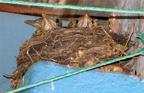 O pai não é dado a cuidar de pássaros, mesmo porque hoje só se tem por lícito manter em cativeiro espécies importadas, como o canário-do-reino e o periquito-australiano. E pena por crime ecológico é de um rigor de arrepiar. Em outras épocas já houve na velha casa alguns nativos, como cardeal, sabiá, cujas vidas e mortes foram relatadas com sincero sentimento em textos para os quais talvez nem mais existam leitores interessados. O pai do pai tinha prazer em tratá-los e apreciar miúdos lances de suas tristes vidinhas de prisioneiros. O pai não, e se abstém de mexer com pássaros mais por comodismo do que por convicções ecológicas. Mas o fato é que, sendo grande, com árvores frutíferas e flores, o quintal abriga uma porção deles, de beija-flores a pardais, de sabiás a tico-ticos, de bem-te-vis a joões-de-barro. Há uns que nem se sabe como se chamam, talvez almas-de-gato, talvez corruíras. Há outros vistosos, por ali apenas de passagem, empenhados em longas viagens para rumos misteriosos. É bom vê-los e ouvi-los todos, principalmente de manhã e de tardezinha. Gostam da comida e do pouso, havendo mesmo casos de alguns beija-flores que aproveitam com prazer uma boa chuveirada, quando alguém da casa está molhando as plantas com suaves esguichos. Raro é o mamão apanhado intacto, sem o certificado de degustação de algum sanhaço, também apreciador de laranjas. Nunca se viu nenhum deles atacando jabuticabas, petisco apreciado por gambás e saguis em noturnas excursões pelas pontas dos galhos carregados. Mas o tema central deste relato é outro. Alertado pelo filho remanescente em casa, o pai fica sabendo que um casal de sabiás está construindo ninho bem perto de cozinha, no pilar do rancho que abriga antigo tanque de lavar roupa, relíquia do tempo da velhíssima mãe, enquanto disposta e trabalhadeira. Devendo ter escolhido ser veterinário ou agrônomo mas tentando ensinar fatos e lendas para classes que nada querem com nada, o filho remanescente estranha o lugar escolhido pelo casal de sabiás – muito perto do movimento de pessoas, muito perto do telhado, de acesso difícil na etapa de alimentação dos filhotes. Mas em matéria de escolher lugar para nidificar (existe este verbo), sabiá deve entender muito mais do que gente, ainda que ecologista de carteirinha. E assim, entre curiosos e preocupados, pai e filho acompanham a construção caprichada do ninho, os ovinhos postos, as quase três semanas do choco, o nascimento de três feiíssimos filhotes, depenados e de insaciáveis bocas, sempre abertas à espera do pai e da mãe, pressurosos em trazer comidinhas de quinze em quinze minutos. Que fazer? Eles são mesmo pressurosíssimos e os filhotes gulosíssimos.