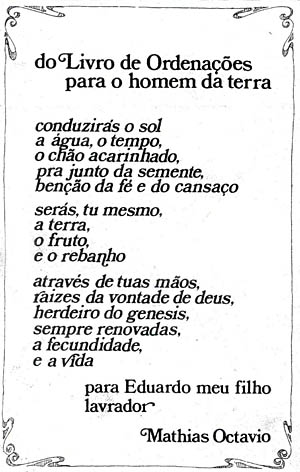 Durante toda a sua vida, o Dr. Roxo dedicou-se a lutar contra o câncer e morreu da mesma doença. “Pesquisador, idealista e extremamente humilde”, fundou a Sociedade Brasileira de Radioterapia, e foi seu primeiro presidente. Segundo o orador da primeira turma de cancerologistas do Instituto Central da Associação Paulista de Combate ao Câncer, “o Dr. Roxo foi lembrado como notável educador, digno, probo, legítimo chefe de escola, que os cancerologistas de todo o mundo reverenciam.” De seu currículo constam: chefe de Radioterapia no Hospital São Paulo e no Instituto Radium; diretor da primeira clínica da Associação Paulista de Combate ao Câncer no Hospital santa Cruz e membro titular da Sociedade de Medicina e Cirurgia de São Paulo. Além e acima de suas qualidades de médico, Eduardo ressalta no seu pai o homem, o cidadão, o esposo afetuoso, o homem de família, enfim. O livro traz dezenas de provas disso, seja por fotografias, seja por depoimentos, seja pelo testemunho de pessoas ligadas, ou não, ao círculo íntimo do homenageado. Manejando com facilidade o idioma, o Dr. Roxo escreveu na mocidade poemas concretistas que chegou a estampar no Estadão. No Suplemento Agrícola do mesmo jornal, publicou um belo texto dirigido a Eduardo, em que fala do orgulho de ter um filho agricultor. Transcrevo literalmente o poema, chamando a atenção do leitor para algumas de suas qualidades: um longo título, ao gosto dos poetas antigos; o emprego do termo ordenações, próprio dos textos legais portugueses e espanhóis, dos tempos de D. Manuel e dos Filipes de Espanha; o uso elegante e de inspiração bíblica de verbos (conduzirás, serás) no futuro do presente e com valor de imperativo, a partir do modelo “Amarás o Senhor teu Deus”: Fico satisfeito em saber que, publicando pequena nota a respeito do depoimento colhido pelo Dr. Luís Carlos Montanheiro a respeito das múltiplas atividades de seu pai, Carlos Montanheiro, dei ao Eduardo o estímulo de ele me enviar o livro sobre a vida do Dr. Mathias Octavio Roxo Nobre, vivíssimo na memória do filho lavrador.