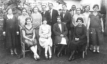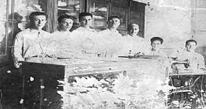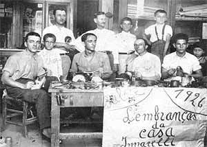 Sapataria Innarelli, em 1926. Da esquerda para a direita. Sentados: Leone Mazzareli, Paschoal Innarelli (Tito), Clésio, Henrique Lazarini e Armando Gumieri. Em pé: Alfredo Innarelli, Pedro Innarelli, Dié, Dândalo Innarelli (Dante) e Marieta Innarelli.