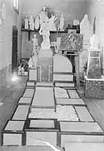 1936. Depósito da Marmoraria Affarelli e Puccetti. Sobre o cavalete, a placa de bronze que, hoje, está no saguão da Escola Euclides da Cunha.