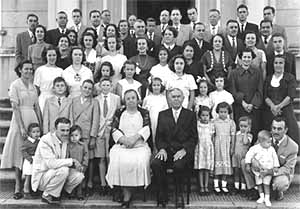 1949. A grande família Perocco. Bodas de Ouro do casal Júlia e Domingos Perocco, sentados no centro da primeira fila.